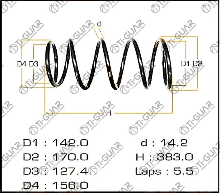 Пружина подвески /передний правый /левый /TI-GUAR для Subaru Forester 2005-2008; TG-CSS0055; (C4B-91221 RK3536 RA1371) C4B91221 20330SA221 20330SA220