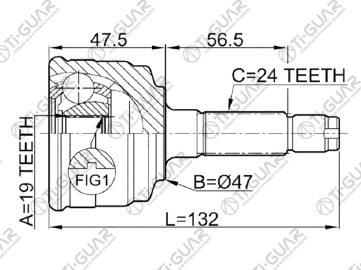 ШРУС наружный /TI-GUAR для Daihatsu Move 1998- Toyota Duet M100A M110A100A M110A; 19*47*24; TG-2814; (DA-E014 LG-DH14 DA014) 0910014 4341097244 DA14